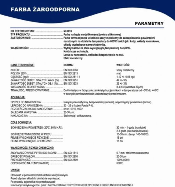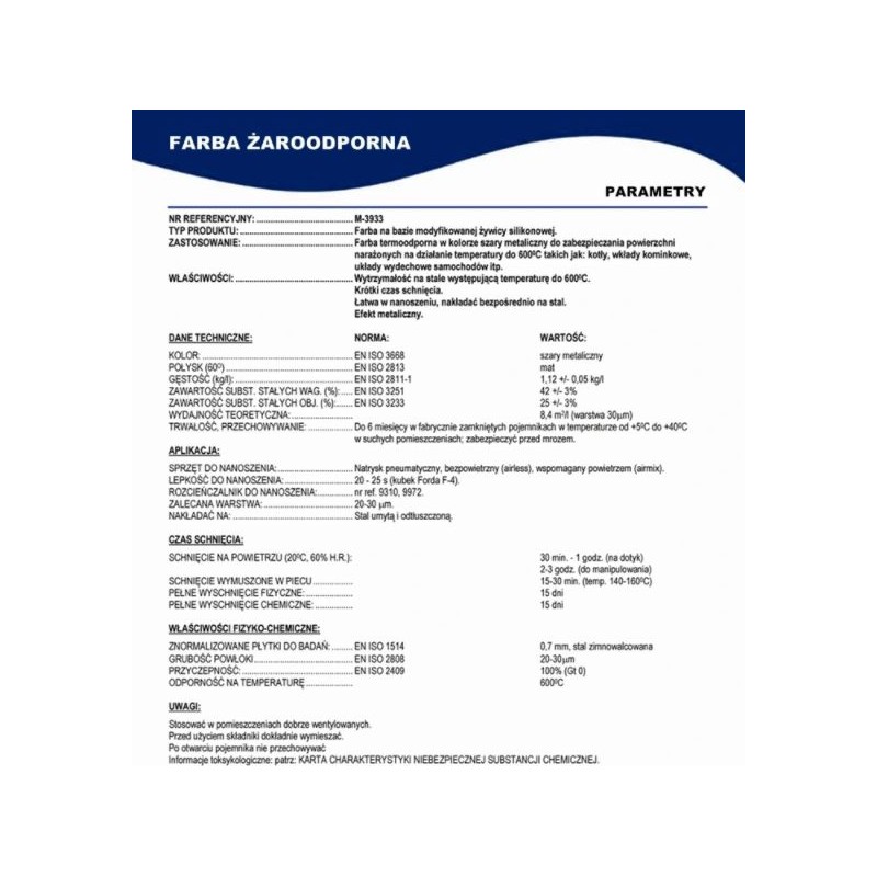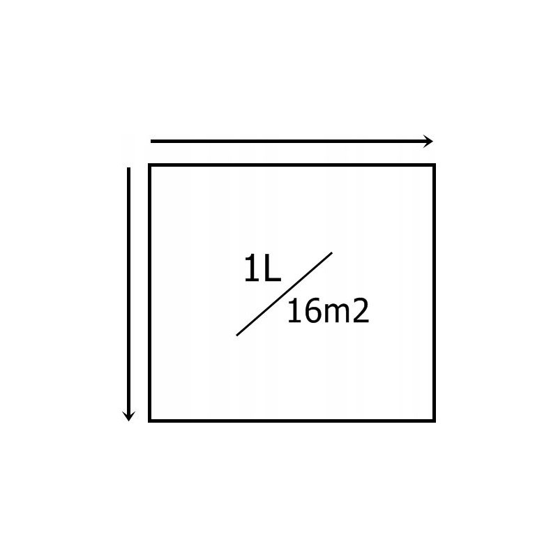 - Wydajność: 16 m²/l przy powłoce o grubości 25µm (zalecana warstwa 20-30µm),