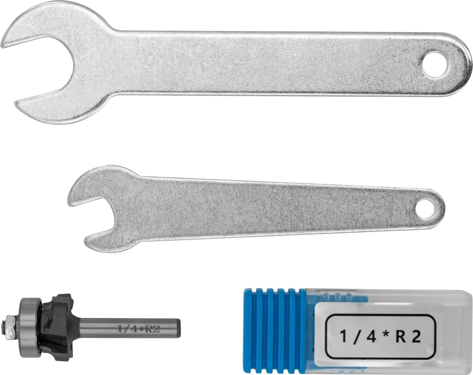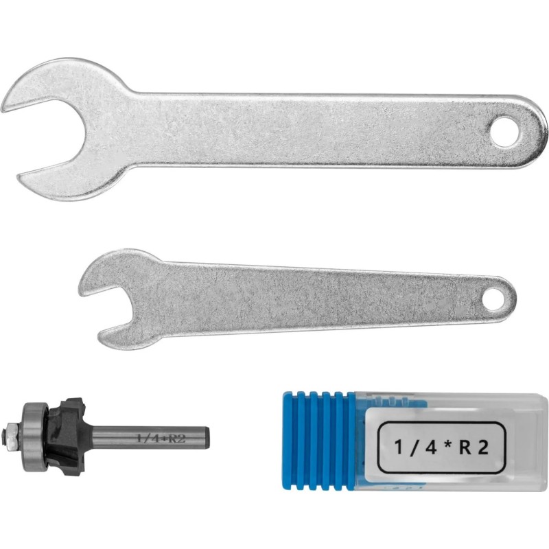 - Zaokrąglone detale – dzięki ostrzu 1/4" R2 frezarka do obróbki krawędzi nada się zwłaszcza do precyzyjnych prac i zaokrągleń
