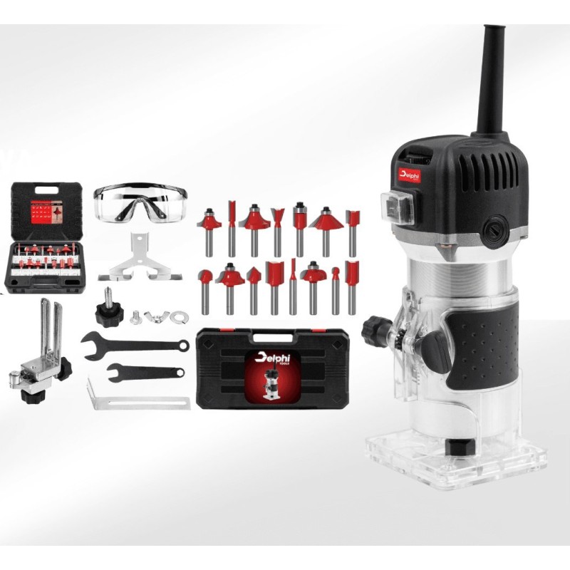 Zestaw do przycinania frezarek DELPHI TOOLS o ogromnej mocy 800W doskonale sprawdzi się zarówno dla osób rozpoczynających swoją przygodę ze stolarstwem, jak i dla doświadczonych profesjonalistów. Dzięki wysokiej jakości, łatwości obsługi i wszechstronnym możliwościom zastosowania, spełni oczekiwania wszystkich pasjonatów majsterkowania!