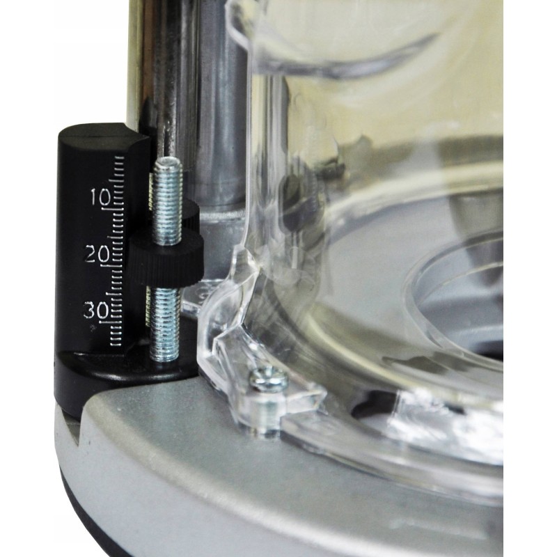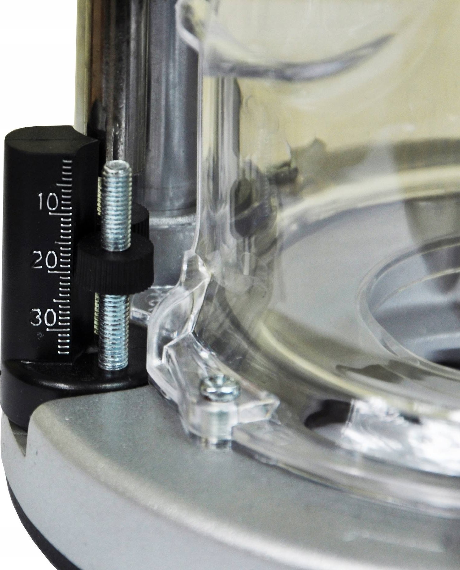 Frezarka oferuje trzy poziomy wysokości z regulacją głębokości frezowania, co ułatwia dostosowanie narzędzia do różnych zadań. W zestawie znajdują się także prowadnice równoległe, co dodatkowo zwiększa precyzję pracy.