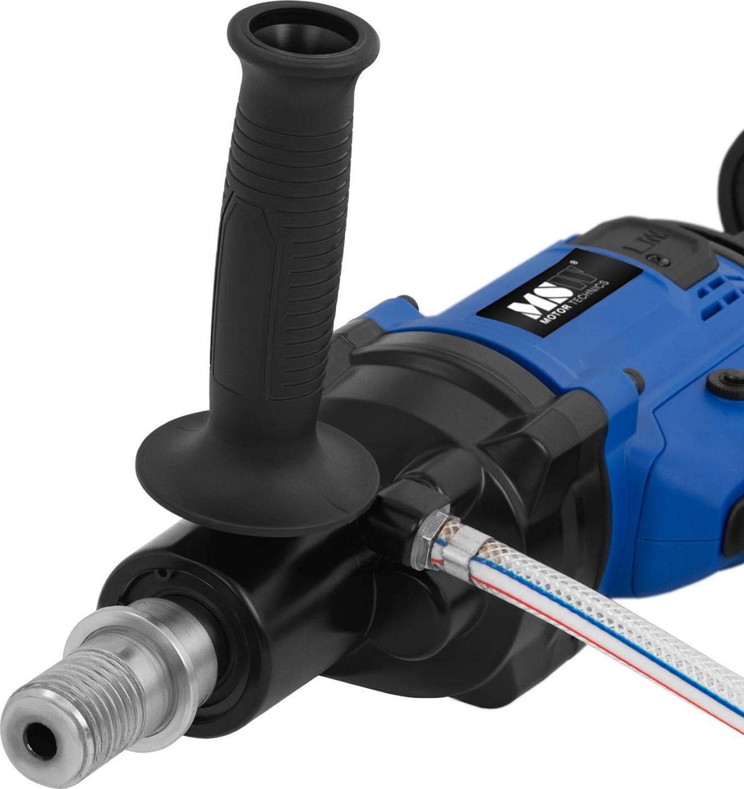 Wiertnica do betonu marki MSW służy do wiercenia rdzeniowego w twardych materiałach budowlanych z użyciem wierteł diamentowych o odpowiedniej średnicy. Wysoka wydajność urządzenia wynika z dużej mocy jego silnika - 2000 W. Pozwala wykonywać otwory o średnicy 150 mm i głębokości 700 mm. Prędkość obrotów bez obciążenia jest regulowana i wynosi od 0 do 1950 obr./min. Otwornica diamentowa ma sprzęgło przeciążeniowe. Bezpieczeństwo pracy zapewnia moduł PRCD. Zapobiega on włączeniu się urządzenia w przypadku zwarcia, jak również przypadkowemu uruchomieniu w czasie podłączania do źródła prądu elektrycznego. Chroni tym samym wiertnicę przed zniszczeniem, a użytkownika przed porażeniem. Ponadto sprzęt wyposażono w zabezpieczenie przed przeciążeniem. Wytrzymała konstrukcja ma długą żywotność. Najważniejsze elementy zostały wyprodukowane ze stopu aluminium odlewanego ciśnieniowo, co zwiększa precyzję działania. Sprzęt znajduje się w wyprofilowanym futerale.