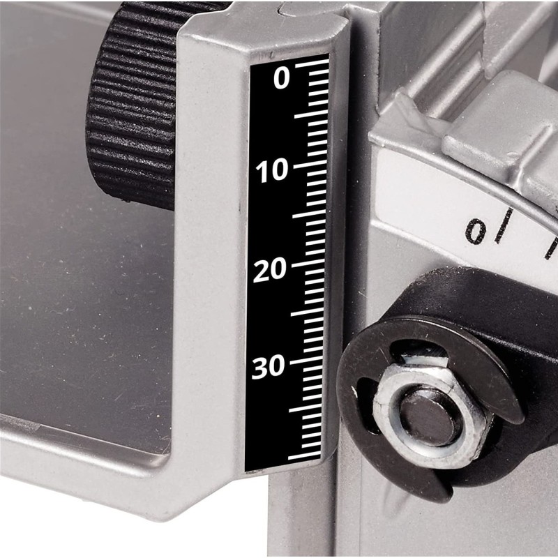 Optymalne ustawienie – Dzięki bezstopniowej regulacji wysokości i kąta do 90°, frezowanie rowków z regulacją głębokości i frezowanie ukośne nie stanowią problemu.