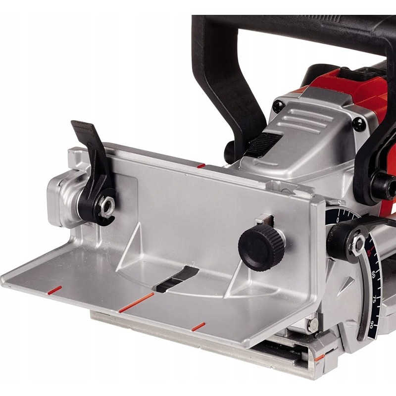 Akumulatorowa frezarka nutowa Einhell TE-BJ 18 Li wyróżnia się indywidualnymi opcjami regulacji. W ten sposób można nie tylko bezstopniowo regulować wysokość, ale także indywidualnie regulować kąt do 90°. Ponadto urządzenie posiada 6-stopniową szybką regulację dla ustawienia dokładnej głębokości frezowania do maks. 20 mm.