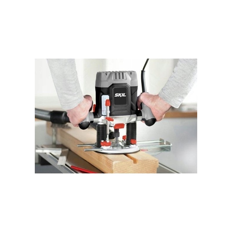 Frezarka Skil 1841 AA została wyposażona w zintegrowaną przystawkę do odsysania pyłu, co zapewnia czystsze miejsce pracy. Dzięki temu użytkownik może skupić się na obróbce, nie martwiąc się o bałagan powstały podczas frezowania.