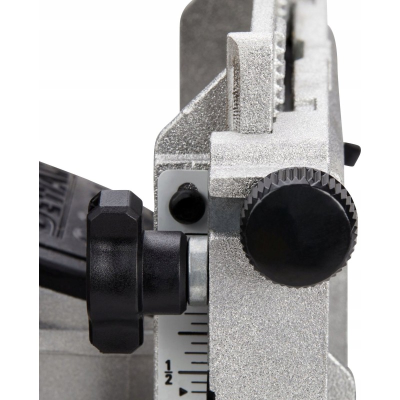 Frezarka została wyposażona w nowoczesny mechanizm zębatkowy, który pozwala na precyzyjne ustawienie w pionie oraz prowadnicy. To innowacyjne rozwiązanie zapewnia użytkownikowi pełną kontrolę nad procesem frezowania, co przekłada się na znakomite rezultaty pracy.