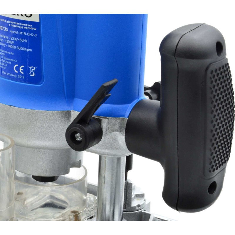 - Zestaw zawiera: tuleje zaciskowe: 6mm, 8mm, ogranicznik głębokości, akcesoria montażowe, 12 frezów do drewna