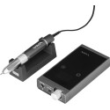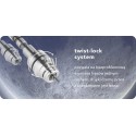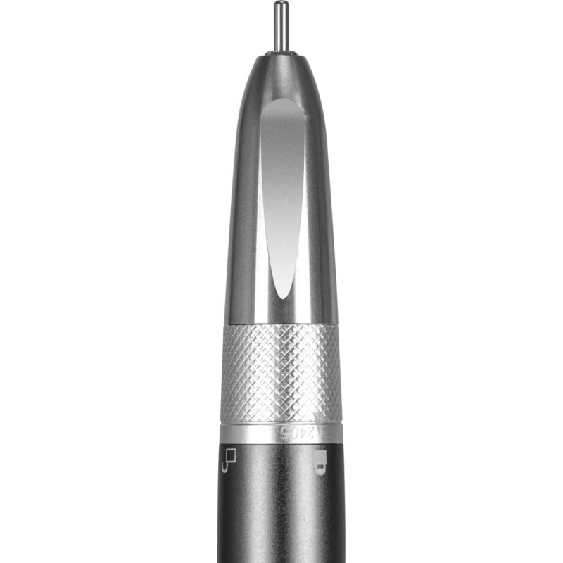 Smukła głowica z antypoślizgowymi elementami doskonale leży w dłoni, zapewnia komfort i precyzję pracy. Odpowiednie wyważenie oraz redukcja drgań minimalizują zmęczenie ręki nawet przy długotrwałym użytkowaniu. System Twist-Lock ułatwia szybką i bezproblemową wymianę frezów, dzięki czemu praca z urządzeniem jest niezwykle łatwa i intuicyjna, co z pewnością zadowoli również najbardziej wymagających użytkowników. Dodatkowo, kabel w oplocie zapewnia większą trwałość i elastyczność oraz wysoki komfort pracy.