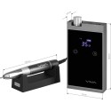 Pokrętło umieszczone u góry urządzenia umożliwia płynne ustawianie prędkości głowicy do 35 000 obrotów na minutę, co pozwala na optymalne dostosowanie jej do indywidualnych potrzeb i komfortowe wykonywanie różnych zabiegów. Dotykowy panel pozwala łatwo zatrzymać pracę urządzenia (funkcja pauzy), a także zmienić kierunek obrotów, co zapewnia pełną kontrolę nad frezarką i ułatwia dostosowanie jej działania do konkretnych usług. Wyrazisty ekran wyświetla stan sprzętu – informuje o prędkości i kierunku obrotów, stanie baterii oraz włączeniu pauzy.