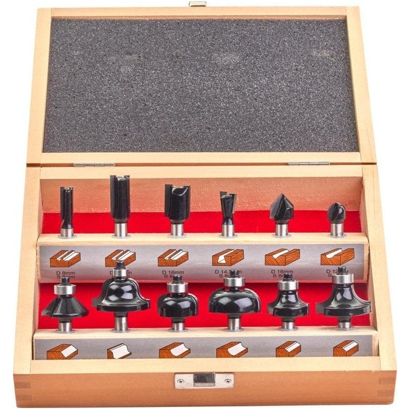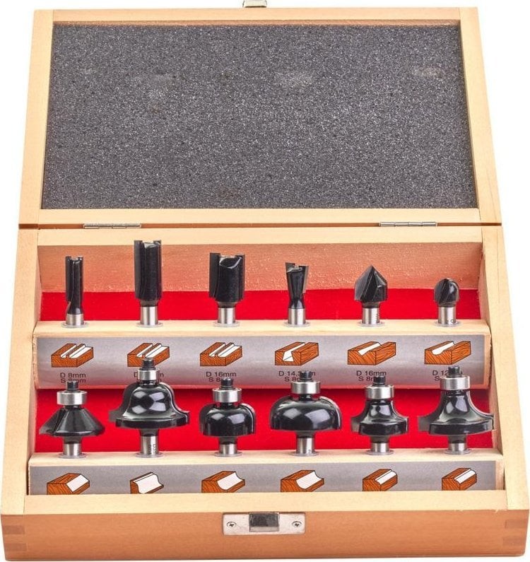Frezy do drewna z trzpieniem 8mm - zestaw 12 szt.
