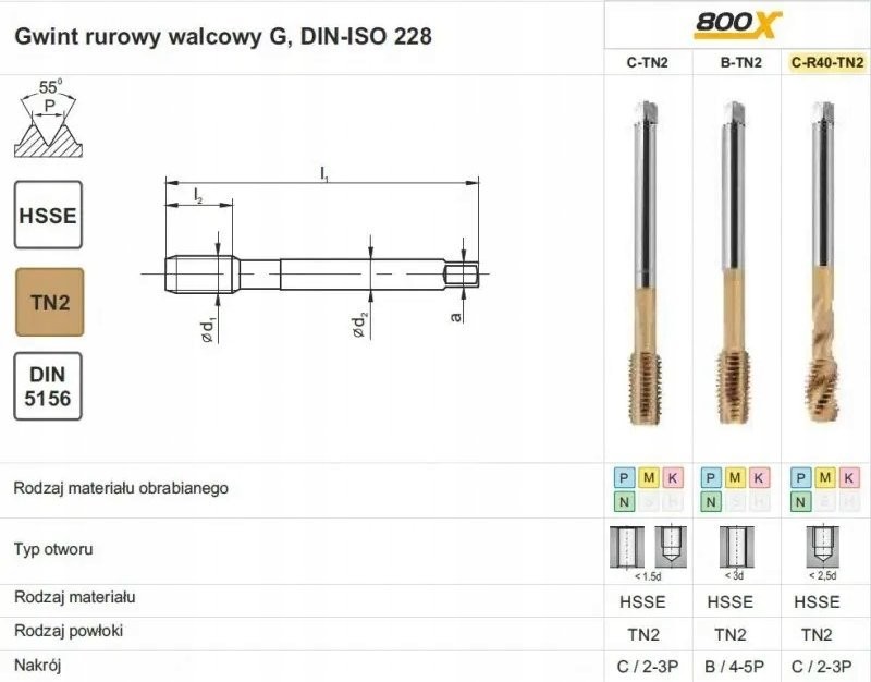 Gwintownik maszynowy G1/8 DIN-5156 HSSE 800X C/2-3P