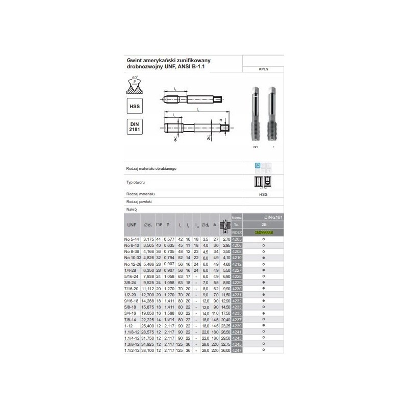 Fanar GWINTOWNIK UNF 3/8-24 DIN-2181/2 (2B) HSS