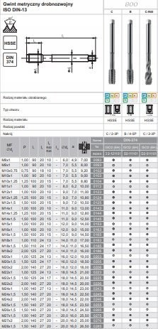 Fanar GWINTOWNIK M14x1 DIN-374C (6H) HSSE 800