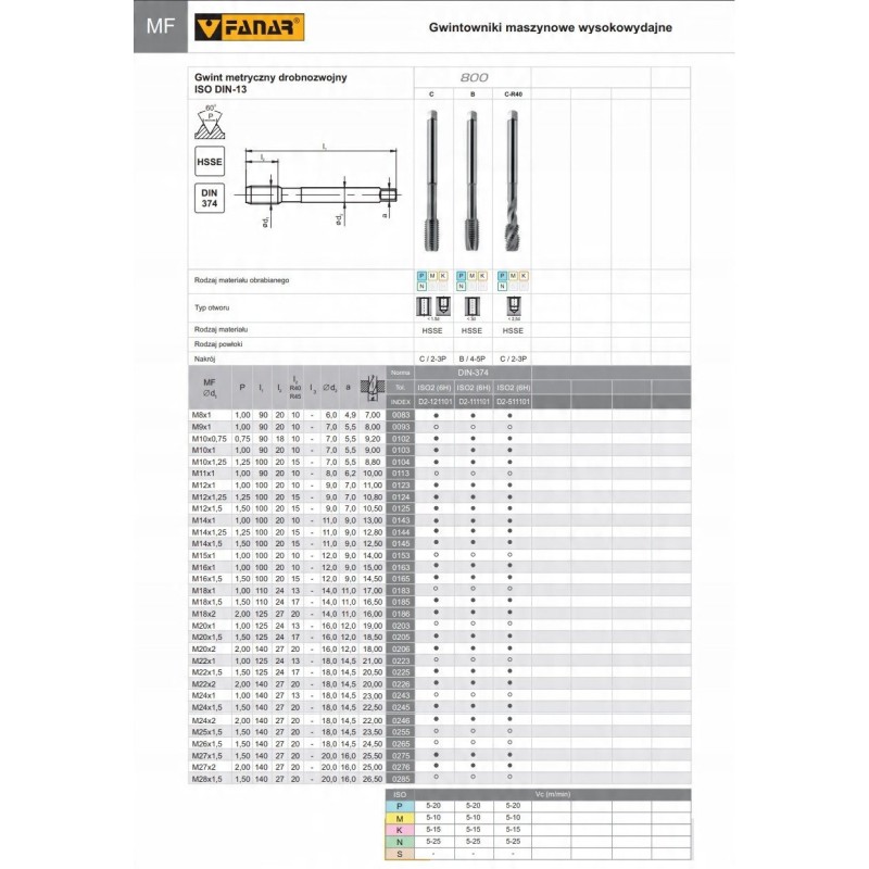 Produkt pochodzi od uznawanej marki Fanar, znanej z wysokiej jakości narzędzi skrawających. Wybierając gwintownik Fanar, inwestujesz w precyzję i niezawodność, które są kluczowe w profesjonalnej obróbce metali.