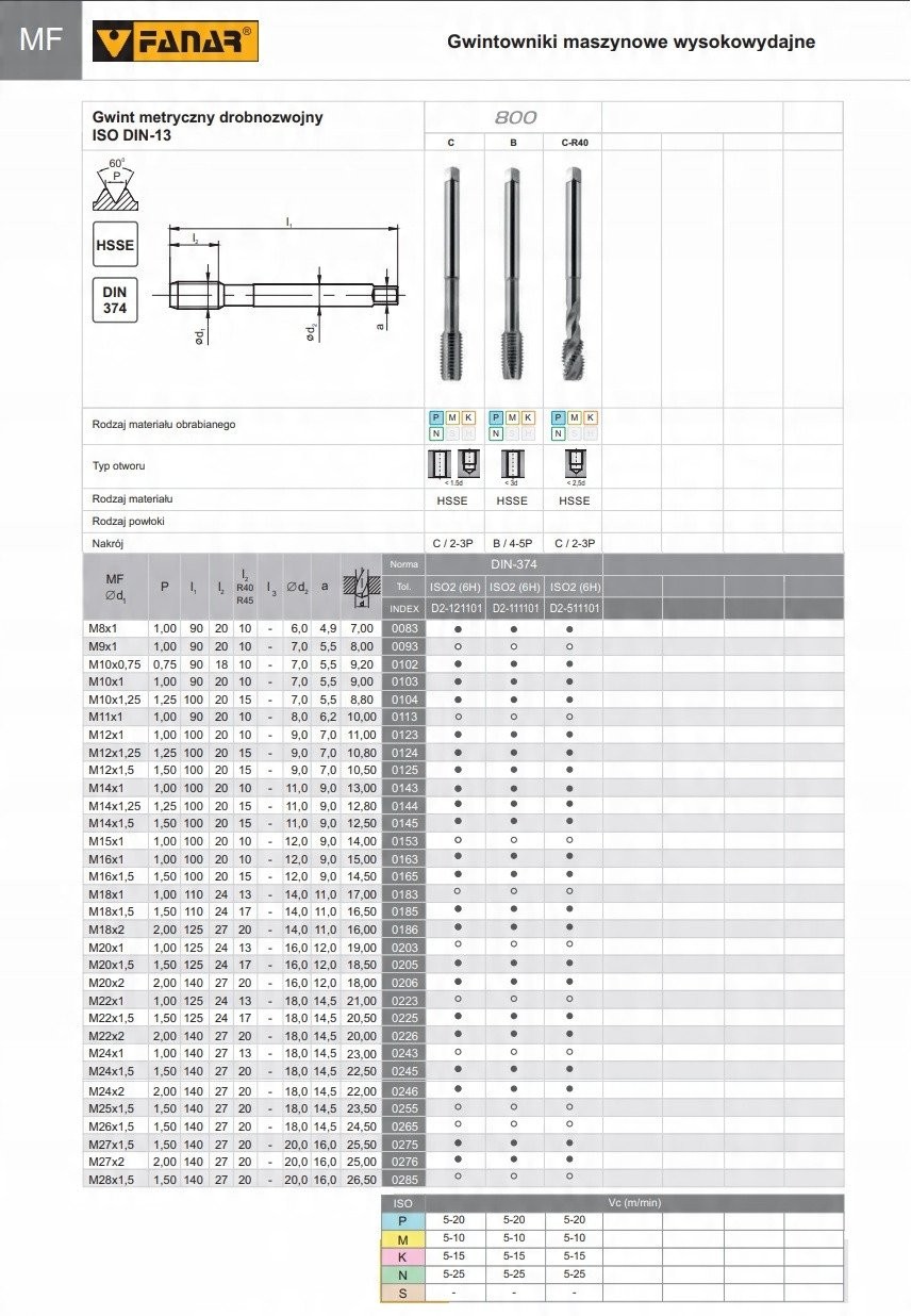 - Typ gwintownika: nieprzelotowy (Rm ≤ 800)