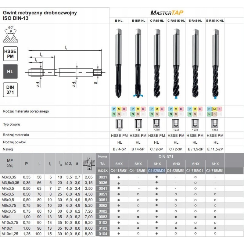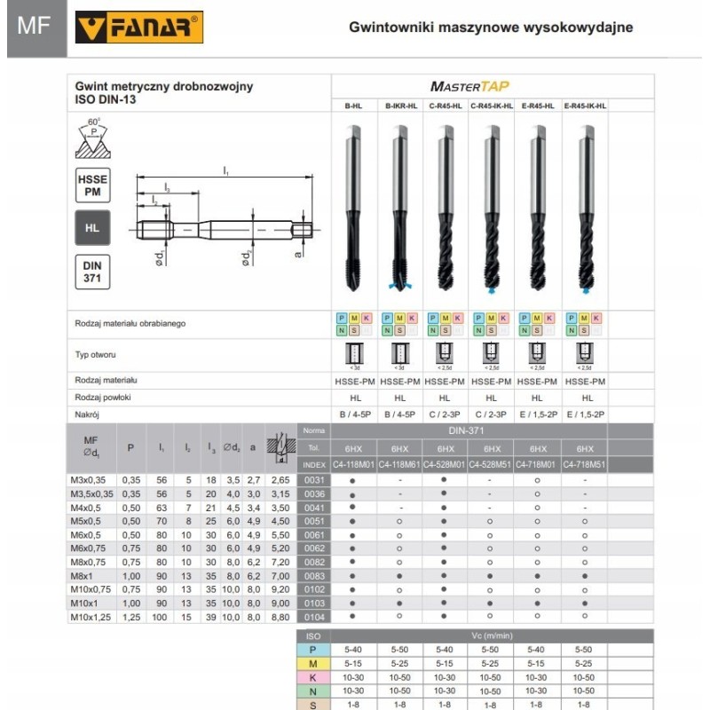 Fanar GWINTOWNIK M 8x1 DIN-371C R45 (6HX) HSSE-PM HL MASTERTAP