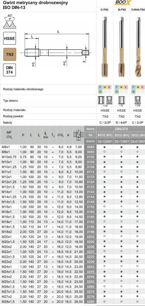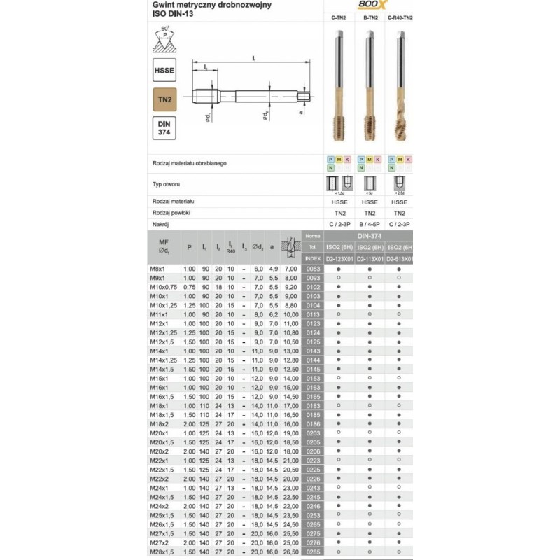 Fanar GWINTOWNIK M16X1,5 DIN-374B (6H) HSSE TIN 800X