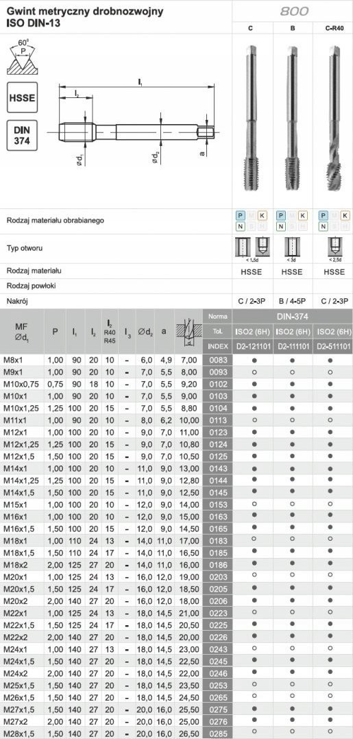 Grupa gwintowników o geometrii i mikrogeometrii zaprojektowanej do obróbki stali węglowych, niskostopowych o Rm do 800 MPa, aluminium. Materiałem narzędzia jest stal szybkotnąca HSSE z 5% zawartością kobaltu, gwarantująca wysoką stabilność ostrzy i możliwość wydajnej obróbki.