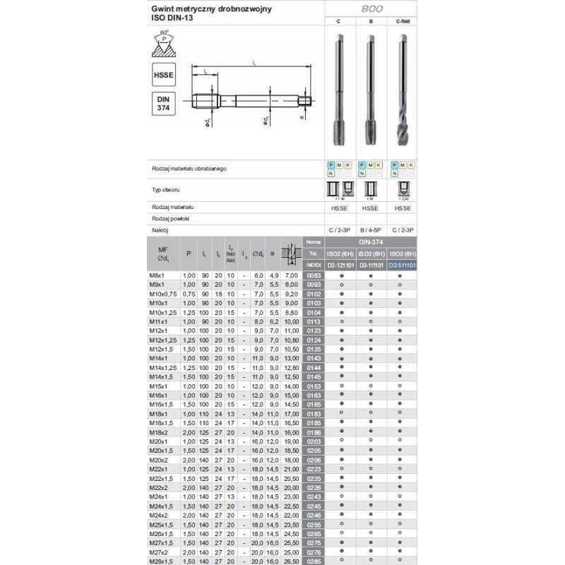 Fanar GWINTOWNIK M24x2 DIN-374C R40 (6H) HSSE 800