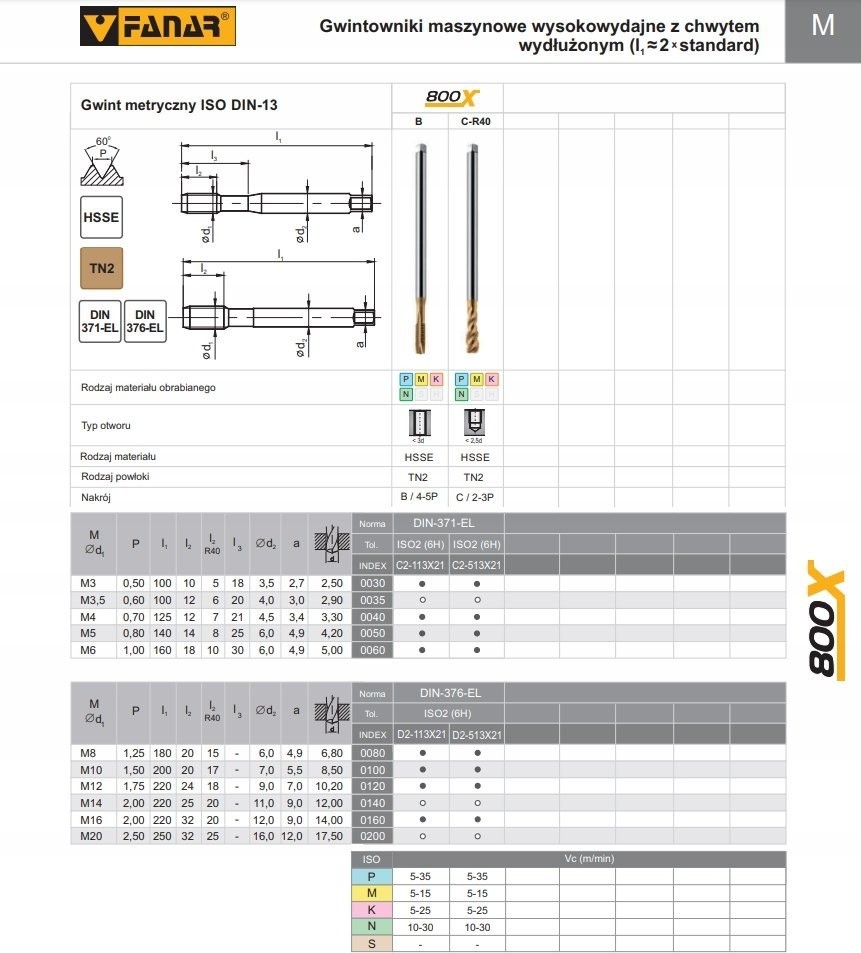 Fanar GWINTOWNIK M16 DIN-376B EL (6H) HSSE TN 800X
