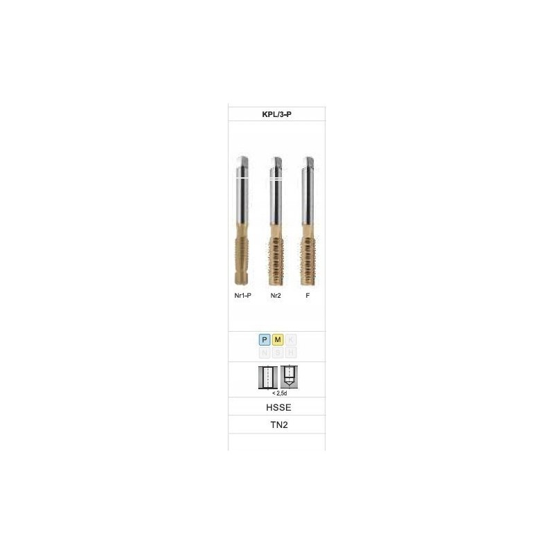 Chłodzenie - brak Tolerancja średnicy podziałowej - 6HX Rodzaj rowków wiórowych - nie dotyczy d1 - P - 2,00 1"/P - l1 - 80 l2 - 32 l3 - d2 - 12,0 a - 9,0 średnica otworu pod gwint - 14,0 Ilość sztuk w komplecie - 3