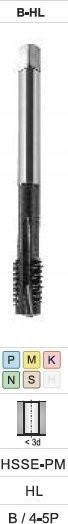 Gwintownik precyzyjny z rowkami prostymi, skośną powierzchnią natarcia oraz nakrojem B (4-5xP) do otworów przelotowych