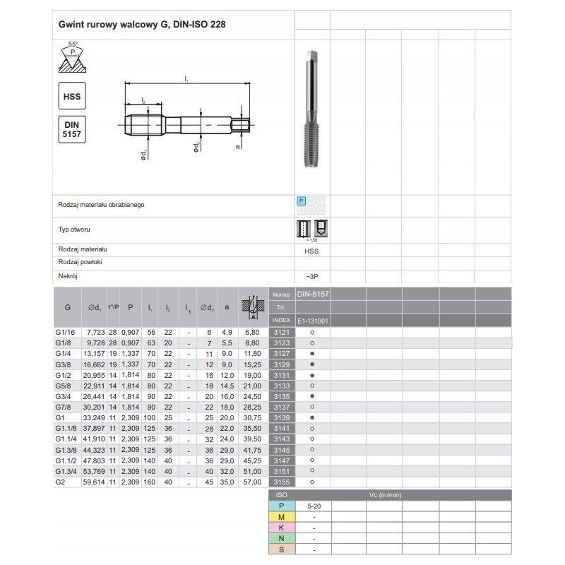 Fanar GWINTOWNIK G 1.1/4" NGRM DIN-5157D HSS