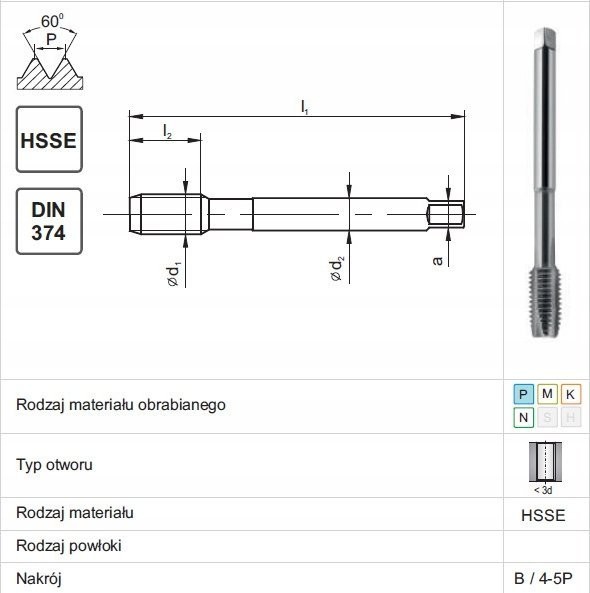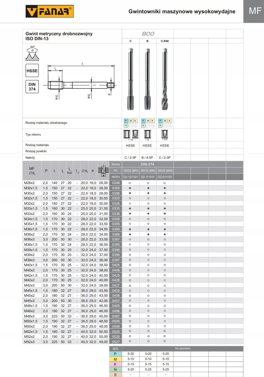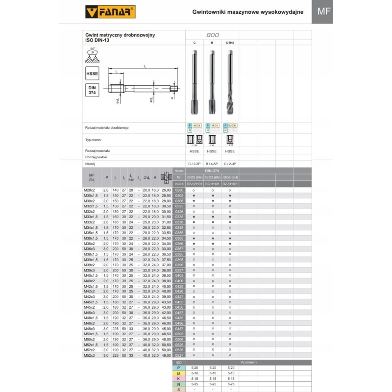 Fanar GWINTOWNIK M32x1,5 DIN-374B (6H) HSSE 800