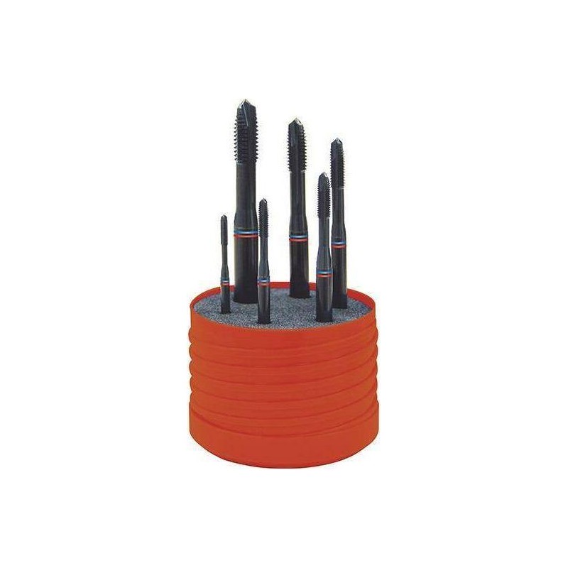 Zestaw gwintowników maszynowych do otworów przelotowych Wykonanie: kształt B. Dostarczane w solidnym pudełku z tworzywa sztucznego wysokiej jakości.