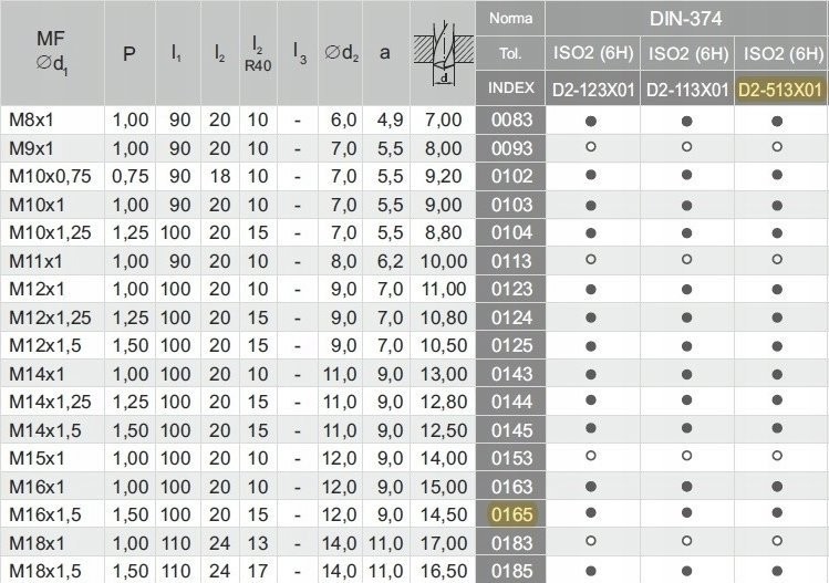 Fanar GWINTOWNIK M16x1,5 DIN-374C R40 (6H) HSSE TIN 800X