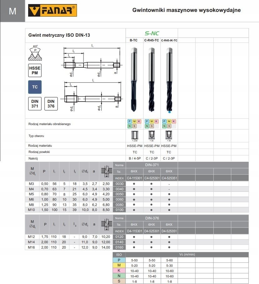 Fanar GWINTOWNIK M16 DIN-376B (6H) HSSE-PM TICN S-NC