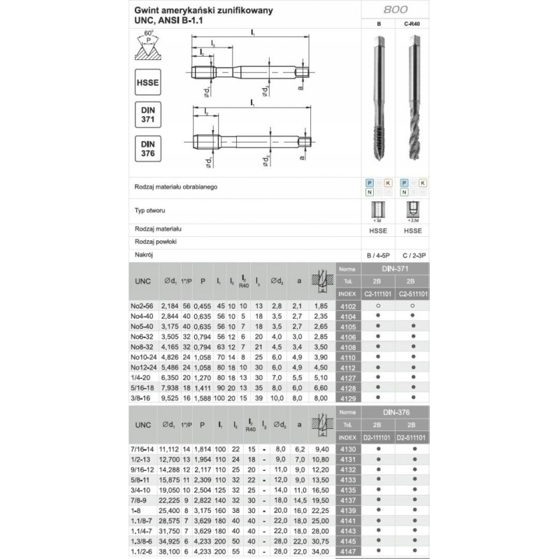 Wiertarka DIN-376B 3/4-10 UNC 2B HSSE 800