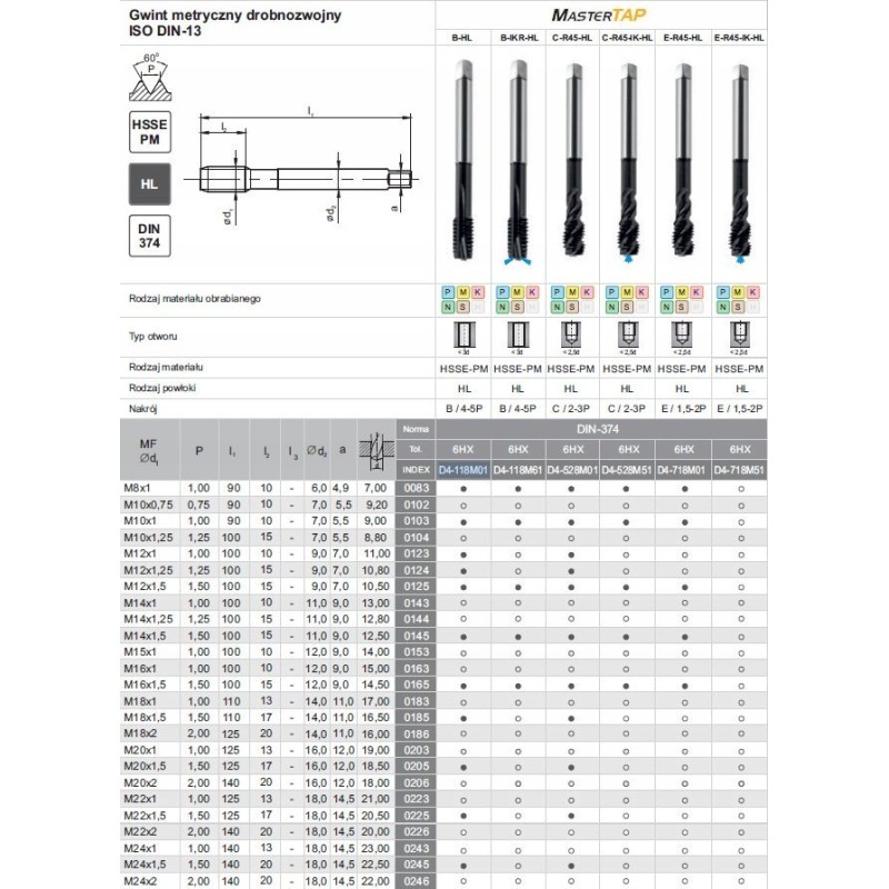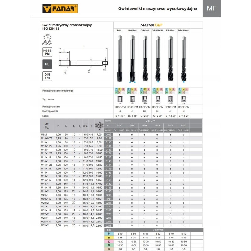 Fanar GWINTOWNIK M10x1 DIN-374B (6H) HSSE-PM HL MASTERTAP