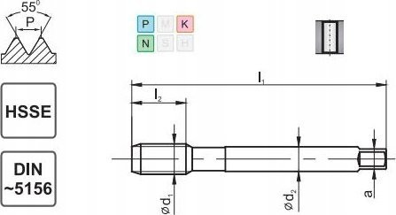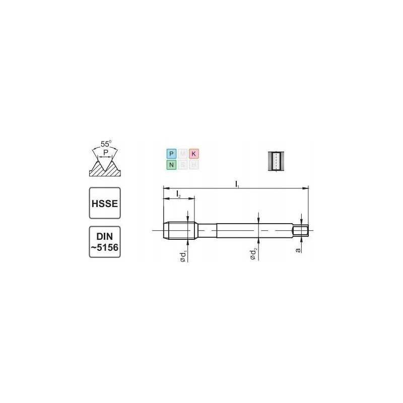 Chłodzenie - brak Tolerancja średnicy podziałowej - Rodzaj rowków wiórowych - Ze skośną powierzchnią natarcia d1 - 33,249 P - 2,309 1"/P - 11 l1 - 160 l2 - 32 l3 - d2 - 25,0 a - 20,0 średnica otworu pod gwint - 30,75