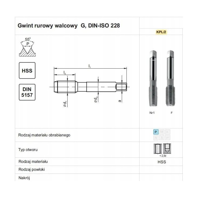 Fanar GWINTOWNIK G 2" NGRA/2 DIN-5157 HSS.
