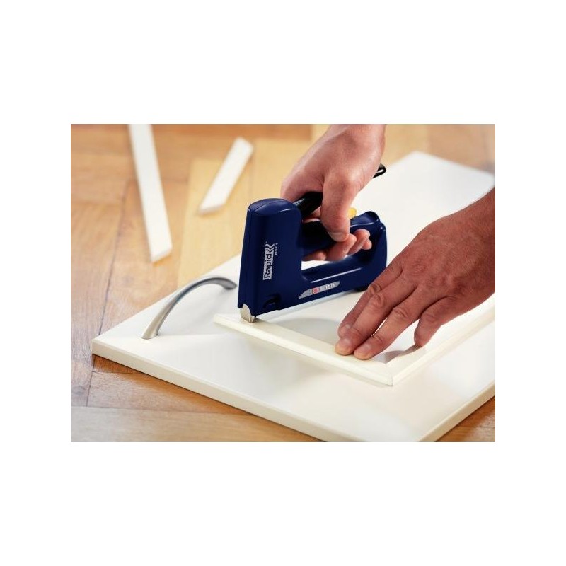 - 2-stopniowy regulator mocy umożliwia dostosowane do różnych materiałów i długości stosowanych zszywek.
