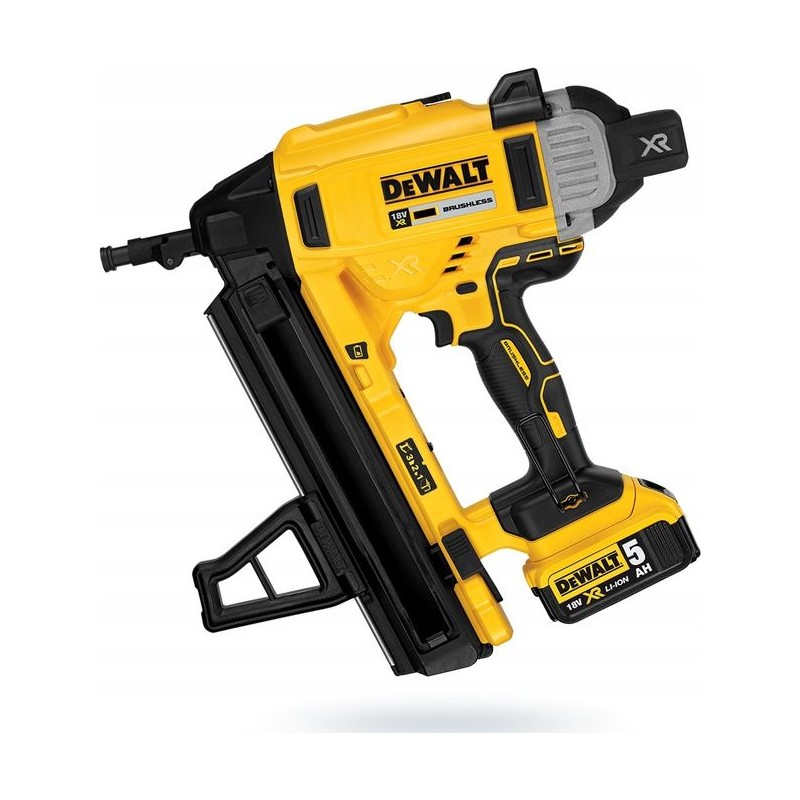 - Gwoździarka do betonu z 5,0 Ah akumulatorem litowo-jonowym 18 V XR i silnikiem bezszczotkowym zapewniającymi wydłużony czas pracy i moc do wstrzeliwania dłuższych gwoździ