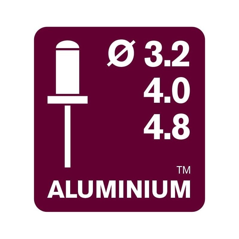 - Narzędzie nadaje się do użytku z nitami aluminiowymi, stalowymi i miedzianymi 3,2–4,8 mm. Odpowiednia do wszelkiego rodzaju prac blacharskich i napraw