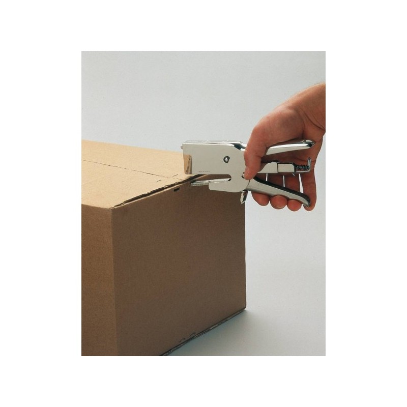 - Może zszywać grube i twarde materiały, w tym tekturę falistą, folie, papier, tworzywa itp.