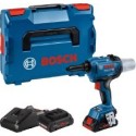 Bosch 0 601 9K5 001. Kolor produktu: Czarny, Zielony, Obsługiwane rozmiary nitów: 3.2,4,4.8,5.0,5.6 mm, Siła ciągnąca: 16000 kN. Źródło zasilania: Bateria, Technologia baterii: Litowo-jonowa (Li-Ion), Pojemność baterii: 4 Ah. Szerokość produktu: 67 mm, Głębokość produktu: 290 mm, Wysokość produktu: 243 mm. Liczba baterii włączone: 2 szt.