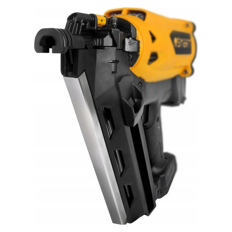 Kąt pochylenia magazynka 34ᵒ pozwala stosować w gwoźdźiarce większość dostępnych na rynku rodzajów gwoździ co dodatkowo zwiększa uniwersalność produktu