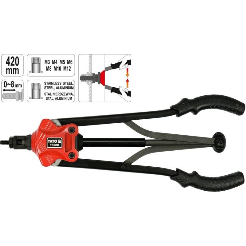 Nitownica ręczna do nitonakrętek M3-M12 marki YATO YT-36125.