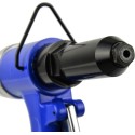 Nitownica pneumatyczna 2,4-6,4 Nitownica jest narzędziem solidnie wykonanym, zrobionym z wysokiej jakości materiałów. Obudowa malowana proszkowo. Wyposażona jest w pojemnik, w którym zbierają się odpadki powstające podczas procesu nitowania. Dzięki możliwości nitowania nitów wykonanych z dowolnych rodzajów materiałów, a także dzięki szczękom różnych rozmiarów - nitownica doskonale nadaje się do pracy w zakładach produkcyjnych. Cechy produktu do stosowania z nitami o średnicy: 2.4, 3.2, 4.0, 4.8, 6.4 mm przyłącze powietrza 1/4" przyłącze węża 3/8"
