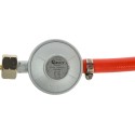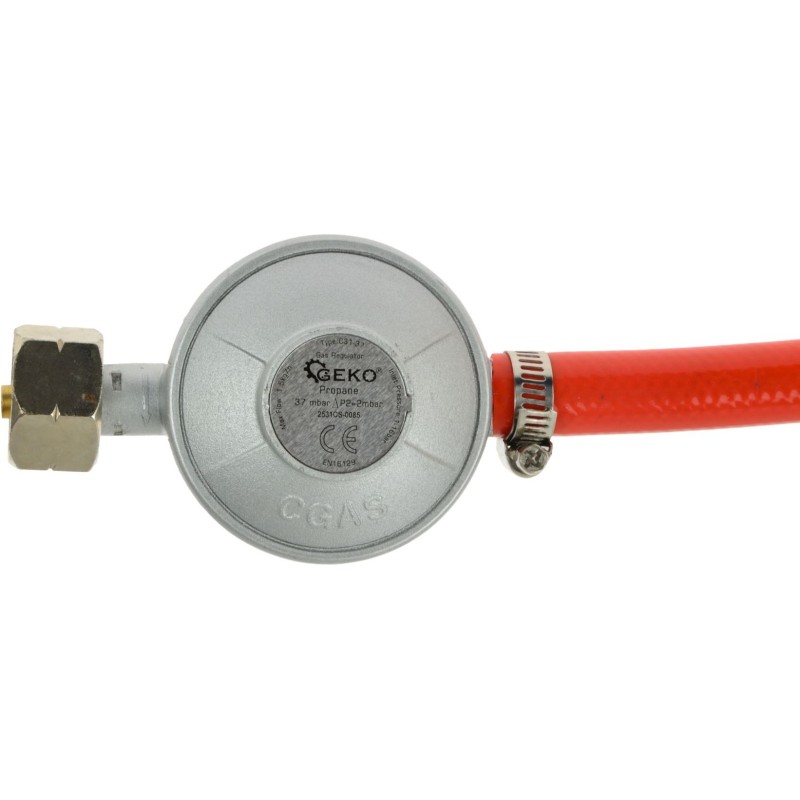Promiennik gazowy „słoneczko” na butle z zapalnikiem PIEZO Wysokiej jakości promiennik na butlę gazową renomowanej marki GEKO. Promiennik znajdzie zastosowanie w warsztatach, sklepach, gospodarstwach domowych, magazynach oraz innych pomieszczeniach z przepływem. Urządzenie cechuję się wysoką wydajnością grzewczą przy jednocześnie niskim zużyciu gazu. Charakterystyka produktu: przystosowany do współpracy z butlami na paliwo propan-butan szybko się nagrzewa i skutecznie emituje ciepło moc znamionowa: 2300-4600 W zużycie gazu na poziomie 167-262 g/h reflektor w rozmiarze 29x23,5 cm dysza gazowa: 0,9mm odległość oddziaływania ciepła: 1m promiennik mocowany bezpośrednio na butle gazową zintegrowany zapalnik PIEZO zawór, wąż gazowy i regulator DVGW palnik ceramiczny z regulowaną mocą grzewczą odbłyśnik z odlewu aluminiowego