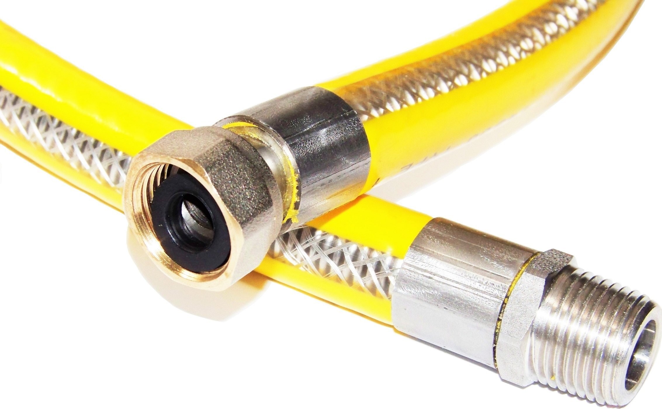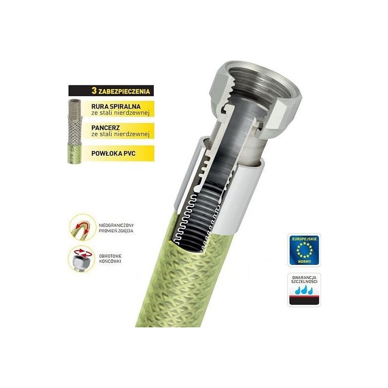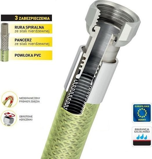 Zewnętrzna osłona siatkowa wykonana z nierdzewnej stali - chroni wewnętrzną rurę przewodu gazowego przed uszkodzeniami mechanicznymi.
