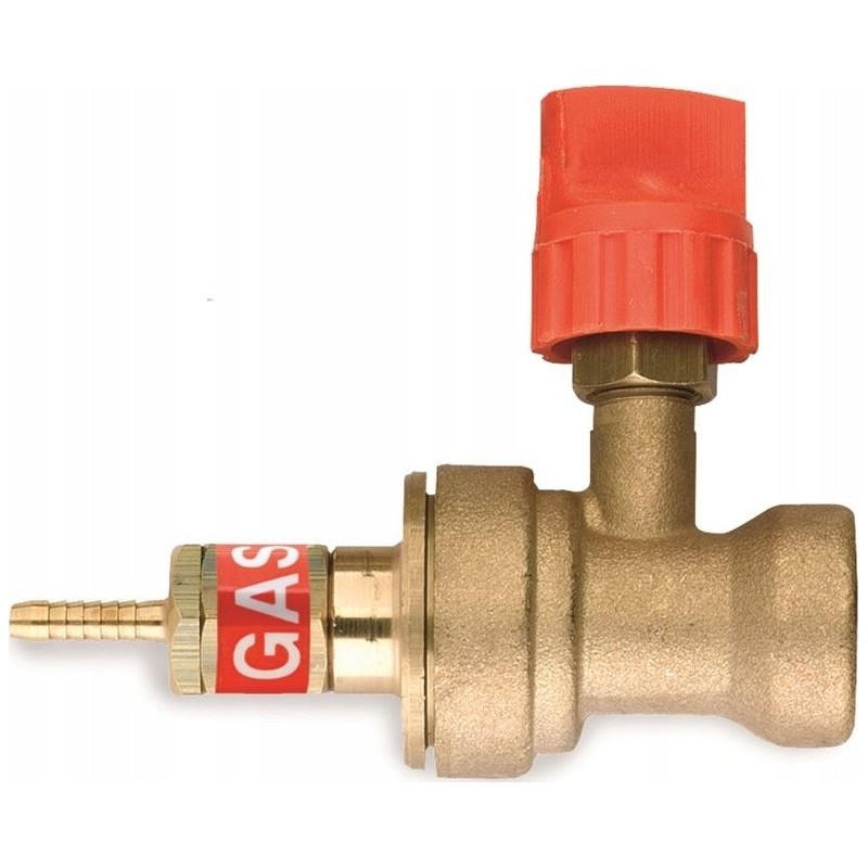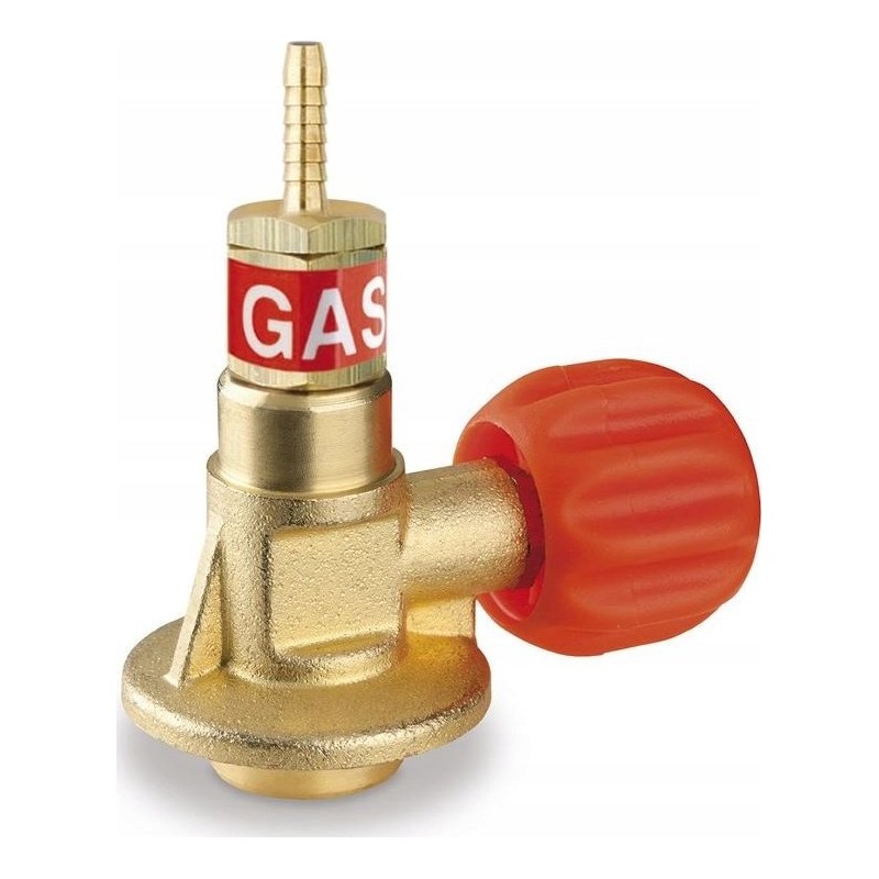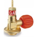 Przyrząd do redukcji przeznaczony do jednorazowych butli gazowych, takich jak Novacet i Supergas, w zestawie z zaworem, który ogranicza cofanie się płomienia.
