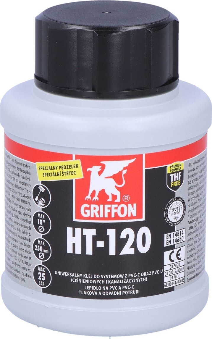 Klej uniwersalny PVC-U/PVC-C 250 mlDo benzyny / ropy naftowej: nieDo chłodnictwa: nieDo drewna: nieDo gazu: nieDo kwasów i zasady: nieDo ogrzewania: nieDo olejów: nieDo papieru: nieDo pary wodnej: nieDo plastiku: takDo sprężonego powietrza: nieDo stali: nieDo tlenu: nieDo wody pitnej: tak