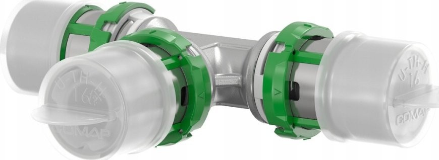 - Technologia "bez zaprasowania, bez szczelności": jeśli złączka nie jest zaprasowana, umożliwia przepływ wody podczas prób ciśnieniowych.