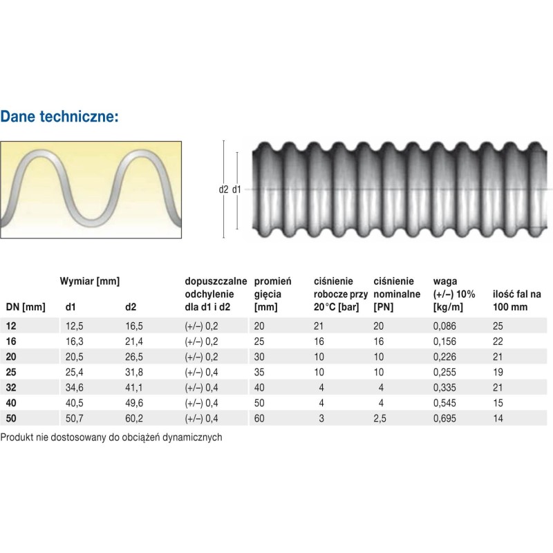 - Rura karbowana wykonana jest ze stali AISI 316L, która jest niezwykle odporna na korozję i agresywne środowisko chemiczne i nie wymaga dodatkowych zabezpieczeń