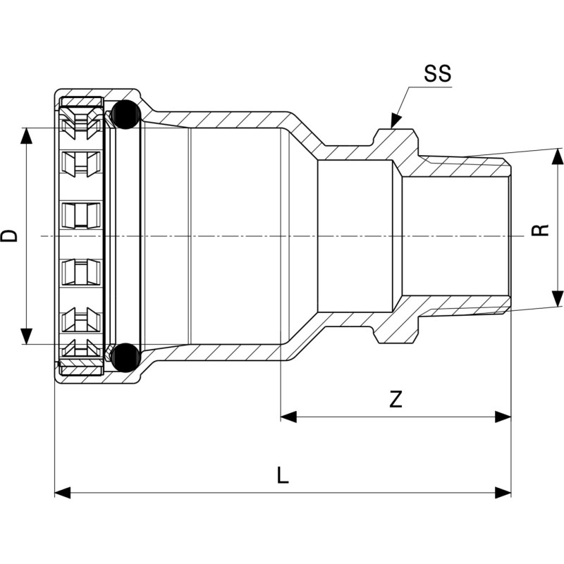 VIEGA Megapress overgang 3/4"x3/4" muffe/nippel, ulegeret stål med zink/nikkel belægning og SC-Contur