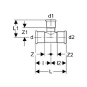 Geberit Trójnik redukcyjny Mapress Edelstahl DN 20 x 15 x 15 ze wskaźnikiem zaprasowania (31228)